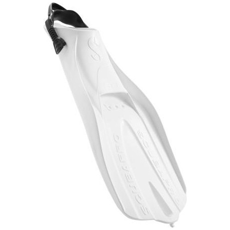 • Palmes pouvant être portées pieds nus et intégrant une sangle élastique autoréglable pouvant convenir à la plupart des pieds pour un enfilage et un retrait aisés. Elles peuvent également être portées avec des chaussons en néoprène.